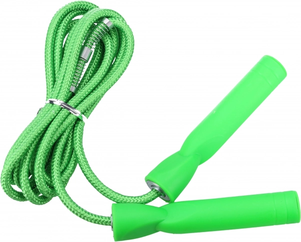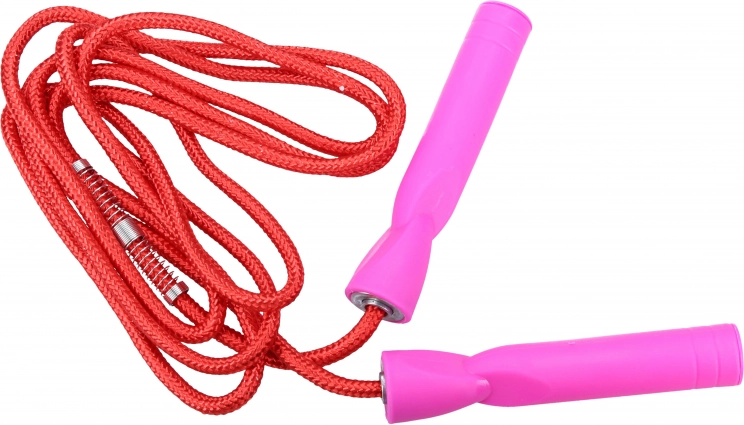 Lekka i wytrzymała plastikowa skakanka o długości 2,5 m to świetny przyrząd do codziennych treningów oraz zabawy z dziećmi. Wspiera koordynację, wytrzymałość i spalanie kalorii. Dostępna w wariantach czerwony, niebieski i zielony.