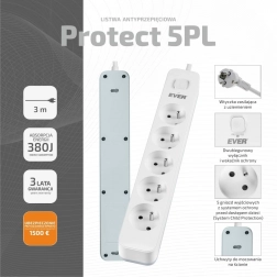 Stylowa listwa przeciwprzepięciowa PROTECT 5PL z kablem 3 m niezawodnie chroni urządzenia domowe i biurowe przed skokami i wahaniami napięcia. Idealna do komputerów, peryferiów, RTV oraz sprzętu multimedialnego.