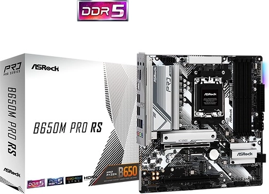 ASRock B650M Pro RS to niezawodna płyta główna microATX dla platformy AMD AM5, oferująca nowoczesne wyposażenie, szybkie pamięci DDR5, wsparcie PCIe 5.0 M.2 dla błyskawicznych dysków oraz bogatą łączność w tym HDMI, DisplayPort i Dragon 2.5G LAN. Idealny wybór do wydajnych komputerów do gier i pracy.