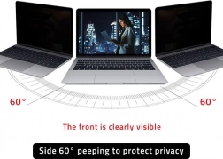 Filtr Qoltec wykorzystuje technologię mikrożaluzji, aby zapewnić prywatność. Ostry i jasny obraz przy bocznym spojrzeniu staje się przyciemniony.