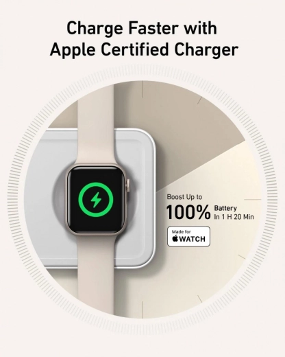 W zestawie znajduje się oryginalny moduł szybkiego ładowania Apple Watch, zapewniający szybkie i efektywne doładowanie Twojego Apple Watch.