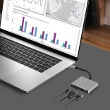 Wszechstronne zastosowanie: Tracer A-1 to wielofunkcyjny adapter, który poprawi łączność twojego komputera lub laptopa. Jest wyposażony w złącze USB-C i trzy porty, które umożliwiają jednoczesne podłączanie i kontrolowanie innych kompatybilnych urządzeń. Port USB 3.0 pozwala na wygodne korzystanie z urządzeń peryferyjnych, np. zewnętrznej klawiatury lub myszy, oferując szybki transfer danych do 5 Gbps. Dzięki portowi HDMI 1.4 podłączysz dodatkowy monitor lub projektor, co umożliwi wygodniejszą pracę na większym ekranie. Ten standard obsługuje jakość 4K, co oznacza, że oglądanie filmów czy granie w ulubione gry będzie jeszcze przyjemniejsze. Trzeci port zapewnia szybkie ładowanie nowych iPhone'ów, iPadów, MacBooków i innych kompatybilnych urządzeń zasilanych przez USB-C.
