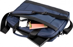 Estetyczna torba BL7 na laptop 15,6" w ciekawym, ciemnoniebieskim odcieniu zapewnia bezpieczeństwo i funkcjonalność. Solidne rozwiązania, takie jak wytrzymały materiał, metalowe haczyki i wygodne uchwyty, a także regulowany pasek na ramię, gwarantują komfort i satysfakcję z użytkowania przez wiele lat.