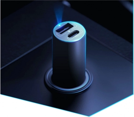 Dwa porty – USB‑C PD i USB‑A – umożliwiają jednoczesne ładowanie dwóch urządzeń. Zintegrowane układy zabezpieczające chronią przed przepięciem i zwarciem, dzięki czemu możesz skupić się na drodze.