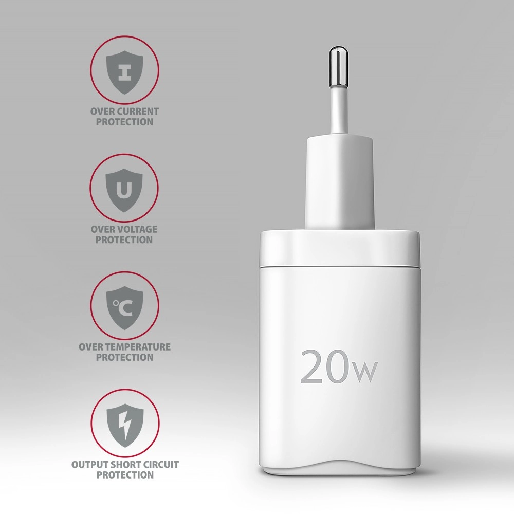 Ładowarka obsługuje ładowanie 20 W dla iPhone’ów 12, 13, 14 i 15 oraz ich modeli Pro i Pro Max. Adapter jest kompatybilny także z innymi standardami szybkiego ładowania dla telefonów Apple iPhone, iPad, Samsung, Huawei, Honor, Xiaomi.