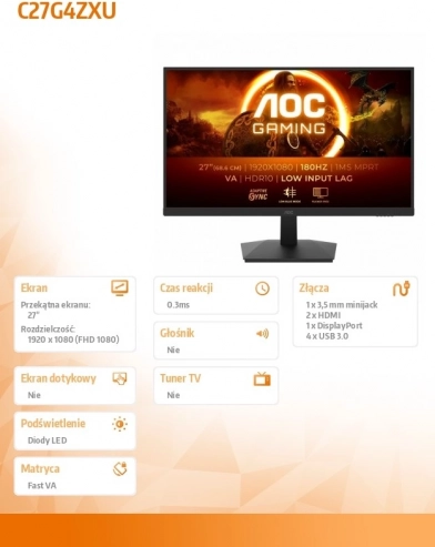 AOC C27G4ZXU 27" zakrzywiony monitor do gier 280 Hz Fast VA