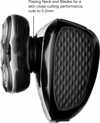 Dzięki wbudowanemu pojemnikowi na włosy minimalizuje bałagan podczas golenia. Golarka jest w 100% wodoodporna, co umożliwia użycie zarówno na mokro, jak i na sucho oraz łatwe czyszczenie pod wodą.