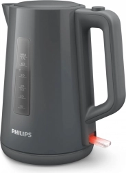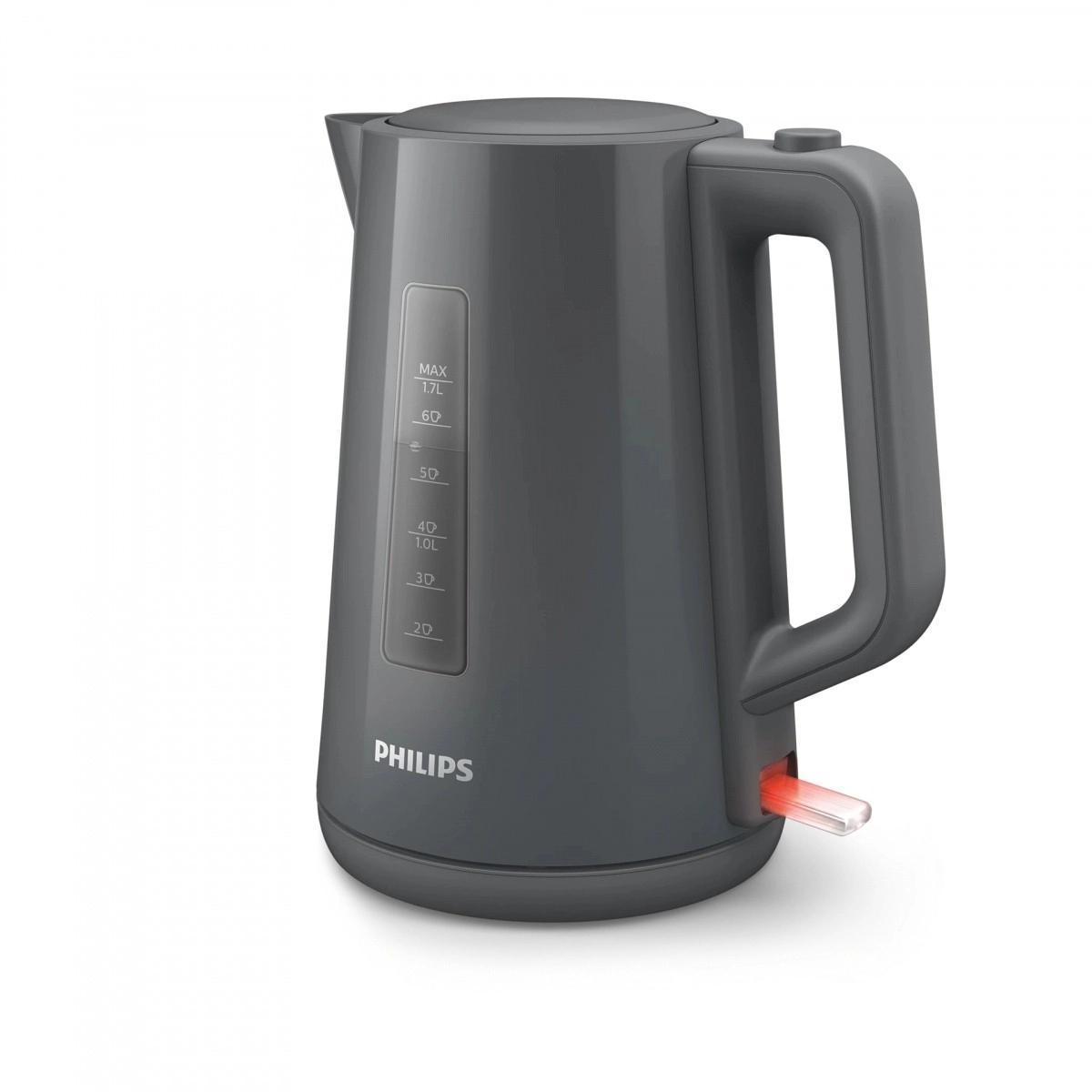 Nowy plastikowy czajnik Philips o pojemności 1,7 litra z automatycznym otwieraniem pokrywy i wskaźnikiem umożliwia szybkie i łatwe przygotowanie ulubionego gorącego napoju.