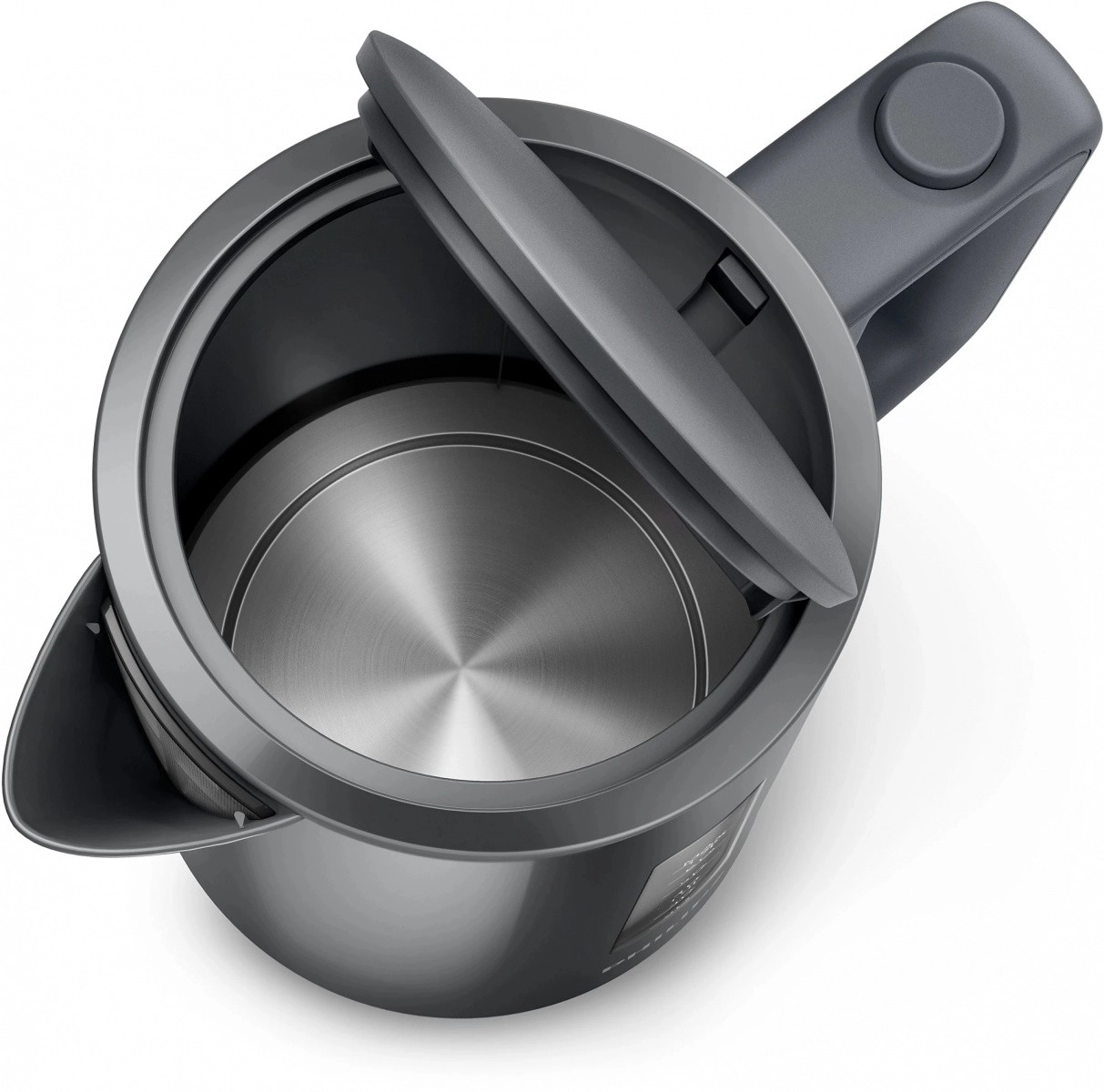 Czajnik można napełnić, otwierając pokrywę za pomocą mechanizmu sprężynowego lub przez wylewkę.
