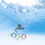 Po wrzuceniu do wody pierścienie automatycznie ustawiają się na dnie, dzięki czemu dzieci mają wyraźny cel do zanurzenia i ćwiczą nurkowanie w naturalny i zabawny sposób.