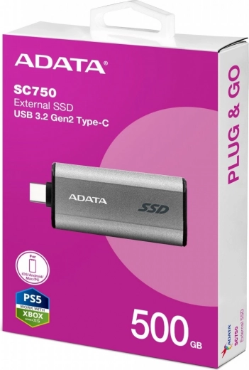 ADATA SC750 to ultraportable zewnętrzny SSD zaprojektowany z myślą o maksymalnej szybkości i wygodzie w podróży. Dzięki interfejsowi USB 3.2 Gen2 (10 Gb/s) i prędkościom do 1050/1000 MB/s możesz pracować bezpośrednio z dysku, płynnie edytować duże pliki wideo i natychmiast przenosić dane.