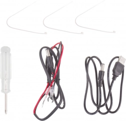 Urządzenie może być zasilane z akumulatora samochodowego, czterema bateriami AA lub za pomocą kabla USB.
