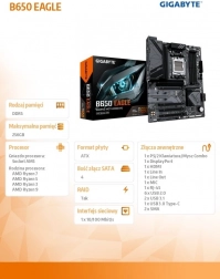 Płyta główna Gigabyte B650 EAGLE została zaprojektowana z myślą o wsparciu procesorów AMD RYZEN 7000 i nowszych, co zapewnia bezkonkurencyjną wydajność w aplikacjach i grach. Dzięki cyfrowemu rozwiązaniu VRM w układzie 12+2+2 uzyskasz stabilne zasilanie.
