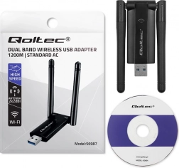 Bezprzewodowy adapter USB Wi-Fi Qoltec został zaprojektowany dla urządzeń bez wbudowanej karty sieciowej lub używających starszych wersji. Oferuje: - Wsparcie dla standardów a/b/g/n/ac dla najwyższej wydajności, - Złącze USB 3.0 wstecznie kompatybilne z USB 2.0, - Dwie częstotliwości 2,4 i 5,8 GHz do streamingu wideo w 4K lub grania w gry, - Przesyłanie danych z prędkością do 1200Mbps, - Wbudowaną podwójną antenę 2 x 2dBi, - Kompaktowe wymiary.