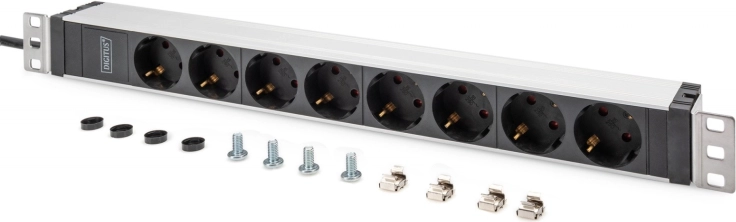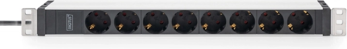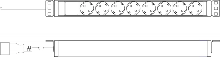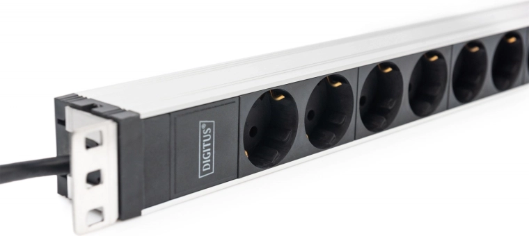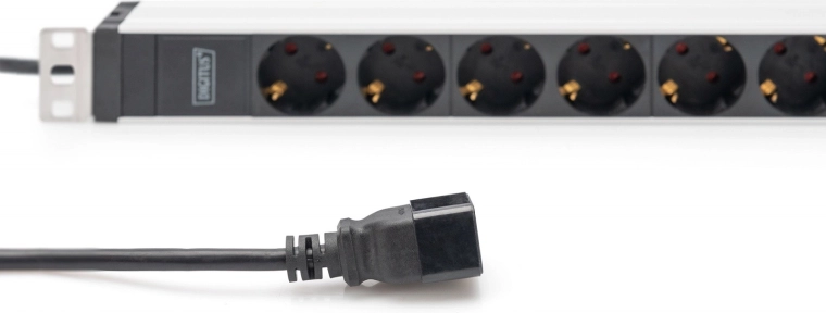 Wejściowy konektor IEC-60320 C20 umożliwia bezpośrednie podłączenie do UPS, natomiast osiem gniazd Schuko obróconych o 35° ułatwia podłączanie nawet większych zasilaczy. Dwumetrowy przewód zasilający upraszcza rozmieszczenie w szafie i optymalizuje prowadzenie kabli.