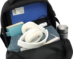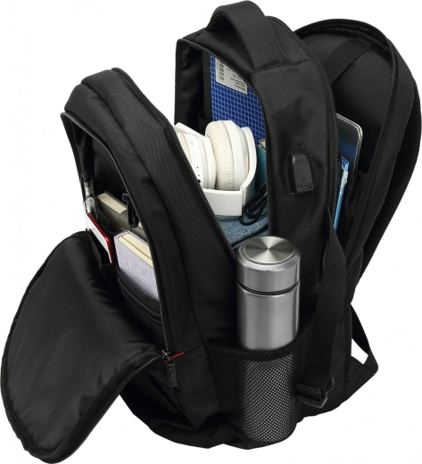 Plecak zaprojektowano do przenoszenia laptopów do 15,6", a także podstawowej odzieży, tabletów i innych urządzeń elektronicznych czy dokumentów. Boczny port USB można łatwo połączyć z powerbankiem umieszczonym w kieszeni, co jest idealne dla osób potrzebujących ładować telefon w drodze.