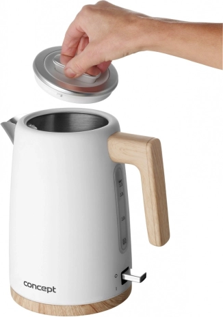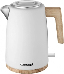 Odkryj piękno i funkcjonalność w jednym. Czajnik CONCEPT ELWOOD w kolorze białym z drewnianymi akcentami doskonale pasuje zarówno do nowoczesnych, jak i tradycyjnych kuchni. Dzięki pojemności 1,7 l szybko zagotujesz wodę dla całej rodziny, a ukryta grzałka ułatwia czyszczenie i minimalizuje powstawanie kamienia.