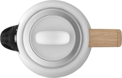 Matowe białe wykończenie z drewnianymi akcentami wygląda czysto i ponadczasowo. Czajnik stanie się stylowym dodatkiem do każdej kuchni.