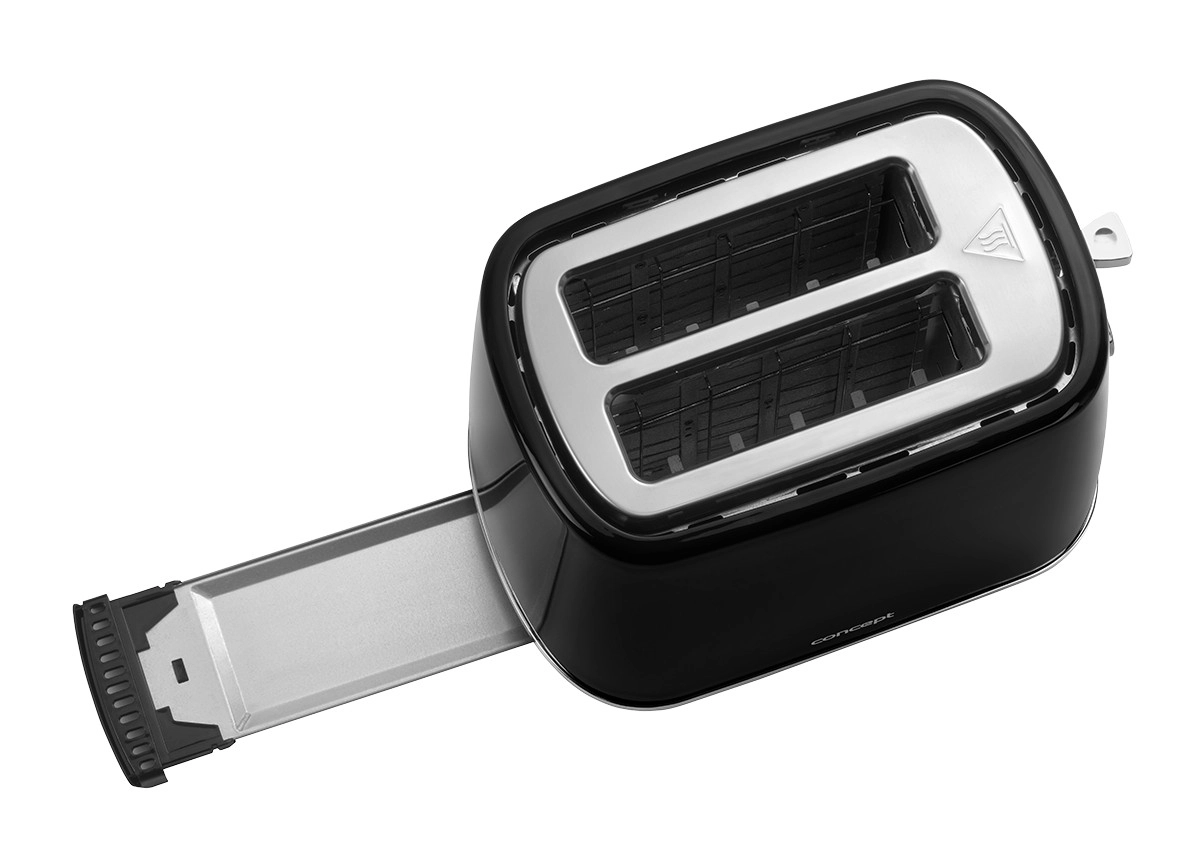 Wysuwana szufladka na okruchy przyspiesza sprzątanie, a wysoki podnośnik umożliwia bezpieczne wyjmowanie nawet mniejszych kawałków pieczywa bez ryzyka oparzenia.