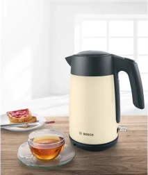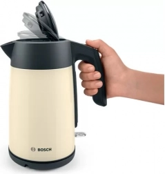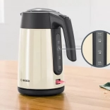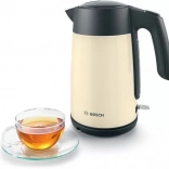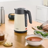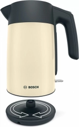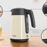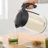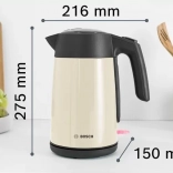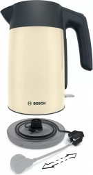 Doświadcz wygody z tym czajnikiem elektrycznym Bosch, który dzięki wskaznikowi poziomu wody pozwala zagotować dokładnie tyle, ile potrzebujesz. Ergonomiczny kształt czajnika zapewnia łatwe nalewanie bez rozlewania, co docenisz na co dzień.