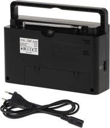 - Źródło ładowania: Zasilacz jest dostarczany z możliwością doładowania: 2 x RL20, co pozwala korzystać z radia także w miejscach bez dostępu do energii elektrycznej.