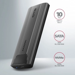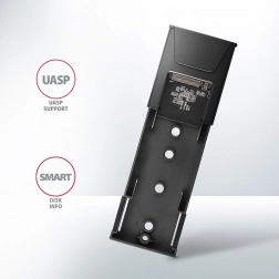 Obudowa AXAGON wyróżnia się szybkim interfejsem USB 3.2 Gen 2 z prędkością transmisji do 10 Gb/s, wsparciem nowoczesnych funkcji takich jak UASP, TRIM oraz możliwością odczytu informacji S.M.A.R.T.. Jest odpowiednia dla różnych długości nośników SSD – 30, 42, 60 i 80 mm.