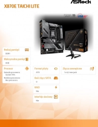 ASRock X870E Taichi Lite została zaprojektowana pod maksymalną przepustowość i długotrwałą niezawodność. Najnowsze interfejsy PCIe 5.0 dla grafiki oraz Blazing M.2 uwalniają potencjał najszybszych SSD, a USB4 typu C (40 Gb/s) przyspiesza pracę z zewnętrznymi dyskami, dokami i monitorami. Wi‑Fi 7 (802.11be) i 5GbE LAN zapewniają błyskawiczne i stabilne połączenie sieciowe o niskich opóźnieniach.