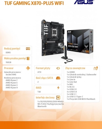 ASUS TUF Gaming X870-PLUS WIFI – płyta główna AM5 z DDR5, HDMI i USB‑C
