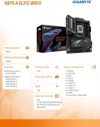 AORUS X870 ELITE WIFI 7 przesuwa granice wydajności desktopowej. Solidne 16+2+2‑fazowe zasilanie Digital Twin VRM stabilnie zasila procesory AMD Ryzen 9000/8000/7000, a cztery gniazda DDR5 Dual Channel z obsługą AMD EXPO umożliwiają maksymalną przepustowość pamięci. Trzy gniazda M.2 PCIe 5.0 x4 i jedno dodatkowe M.2 zapewniają ultraszybką pamięć masową do wymagających aplikacji i gier.
