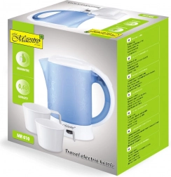 Czajnik ma wygodne, ręczne otwieranie pokrywki, a długość przewodu zasilającego wynosi 54 cm. Produkt waży 560 g, a jego wymiary to 16,5 x 10,6 x 15,5 cm, co czyni go praktycznym i łatwym do przechowywania. Podróżny czajnik Maestro MR-010 to doskonały wybór dla osób poszukujących praktycznego i niezawodnego wyposażenia w podróży.