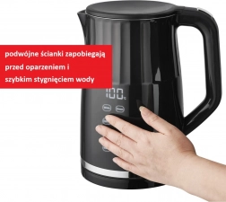 Czajnik wyposażono w dotykowy panel sterowania, który umożliwia łatwą i intuicyjną obsługę. Temperaturę wody można ustawić w zakresie od 40 do 100 °C, a każdy dotyk przycisku zmienia temperaturę o 5 °C. Dzięki temu możesz precyzyjnie dopasować temperaturę do wymagań różnych rodzajów herbaty i innych napojów.