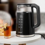 Czajnik elektryczny Maestro jest wyposażony w dotykowy panel sterowania, który umożliwia intuicyjną i wygodną obsługę. Można łatwo ustawić temperaturę wody w zakresie od 40 do 100 °C, a pojedyncze naciśnięcie przycisku zmienia temperaturę o 5 °C. Dzięki temu możesz precyzyjnie dostosować temperaturę do wymagań różnych rodzajów herbat lub innych napojów.