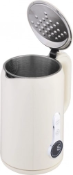 Czajnik elektryczny Maestro o pojemności 1,7 litra i mocy 2200 W oferuje nowoczesne funkcje i bezpieczne użytkowanie dzięki podwójnym ściankom dla obniżenia temperatury powierzchni.