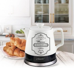Elegancki ceramiczny czajnik MAESTRO PARIS MAISON wprowadzi do Twojej kuchni styl i funkcjonalność. Ceramiczny korpus lepiej utrzymuje temperaturę, ukryta grzałka ułatwia czyszczenie, a obrotowa podstawa 360° z podświetlanym włącznikiem zapewniają wygodę każdego dnia.