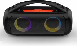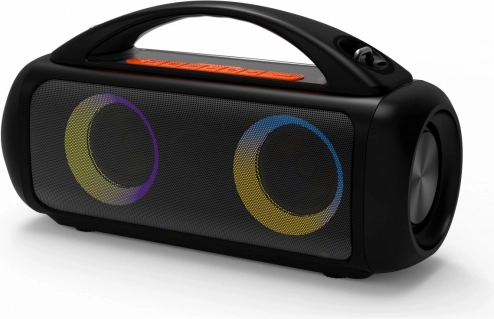 Dopracowana akustyka z 2× przetwornikami 3" i 2× pasywnymi radiatorami zapewnia potężny bas i czyste wysokie tony w zakresie 100–20 000 Hz. Kompaktowe wymiary, zintegrowany uchwyt i pasek na ramię ułatwiają przenoszenie. Okrężne efekty RGB podkreślą klimat każdej imprezy.