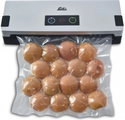 SOLIS Vac Smart pomaga ograniczyć marnowanie i dłużej zachować smak potraw. Pakuj rolki i worki o szerokości 30 cm lub żywność w zamykanych pojemnikach próżniowych (przez opcjonalną rurkę). Ściśle zapakowane produkty dłużej utrzymują aromat, smak i strukturę, a także idealnie nadają się do gotowania sous‑vide.