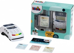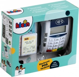 Terminal płatniczy stworzony przez firmę Klein jest w kolorze białym i niebieskim z białym panelem klawiatury. Zabawka wykonana jest z wysokiej jakości plastiku i ma wiele funkcji, które zainteresują każdego właściciela małego sklepiku. Ten zabawkowy dodatek kasowy wnosi do dziecięcego pokoju powiew nowoczesnych technologii. Płatności bezdotykowe stają się tu formą zabawy, ale także elementem edukacyjnej rzeczywistości.