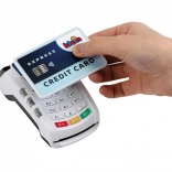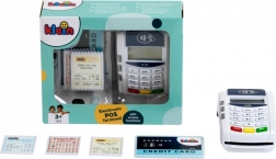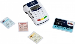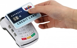 Zestaw terminala zawiera jedną kartę kredytową z funkcją płatności bezdotykowej oraz 3 papierowe paragony do zabawy. Rozmowa z klientami przy nowoczesnym terminalu płatniczym uczy dzieci umiejętności komunikacyjnych, a manipulacja kartą płatniczą wspiera rozwój motoryki.