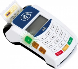 Terminal płatniczy do złudzenia przypomina prawdziwe urządzenie. Ma działające przyciski i czytnik płatności bezdotykowych. Podczas użytkowania emituje delikatne światło i dźwięki. W trakcie zabawy wystarczy wprowadzić i zatwierdzić kwotę, przyłożyć kartę do terminala, wpisać i potwierdzić PIN, a płatność jest gotowa. Przeciągnięcie dołączonej karty płatniczej przez czytnik jest opatrzone realistycznymi dźwiękami, tak jak w prawdziwym urządzeniu. Do prawidłowej zabawy potrzebne są baterie, które nie wchodzą w skład zestawu.