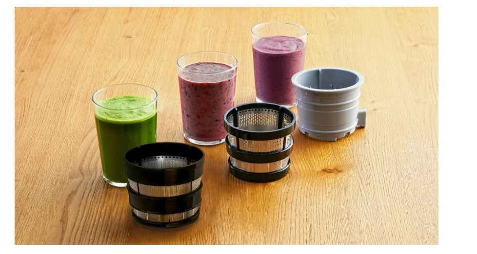 Delektuj się świeżymi sokami według własnego gustu. Wyciskarka BOSCH MESM731M działa wolno i delikatnie, zachowując maksimum składników odżywczych, smaku i koloru. Dzięki MixControl łatwo dopasujesz ilość miąższu od krystalicznie klarownego po gęsty sok.