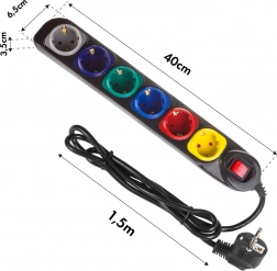 Praktyczna listwa MACLEAN z sześcioma gniazdami i kablem 1,5 m to świetny wybór do domu, biura i warsztatu. Kolorystycznie wyróżnione gniazda ułatwiają identyfikację podłączonych urządzeń, podświetlany główny wyłącznik zapewnia szybkie odłączenie zasilania, a zabezpieczenia dla dzieci podnoszą poziom bezpieczeństwa. Przeznaczona do 250 VAC / 10 A, klasa ochrony IP20.