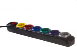 Każde z sześciu gniazd ma inny kolor dla łatwej identyfikacji podłączonych urządzeń – porządek w kablach nawet przy pełnym obciążeniu.