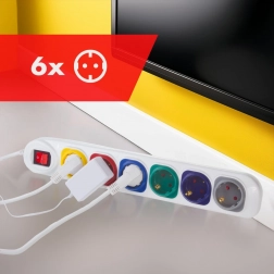 Sześć kolorowych gniazd umożliwia łatwą identyfikację podłączonych urządzeń i dodaje estetycznego wyglądu.