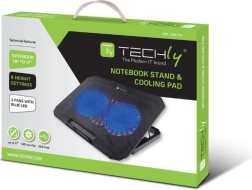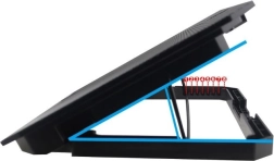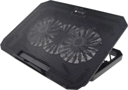 Utrzymuj laptop w bezpiecznych temperaturach i pracuj wygodniej dzięki tej uniwersalnej podstawce chłodzącej dla urządzeń do 17". Oferuje dwa ciche wentylatory 140 mm z niebieskim podświetleniem LED, do 8 poziomów regulacji wysokości dla lepszej ergonomii, praktyczną antypoślizgową zapadkę oraz hub USB z 2 portami dla łatwego podłączania akcesoriów.