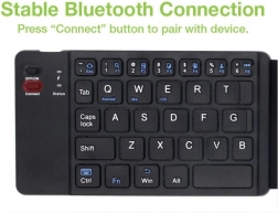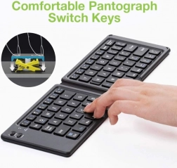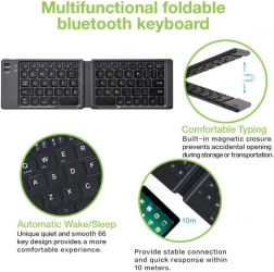 Ultraprzenośna składana klawiatura z technologią Bluetooth 3.0 oferuje standardowy układ dla wygodnego pisania gdziekolwiek. Dzięki lekkiej i kompaktowej konstrukcji mieści się w kieszeni, łączy się bezprzewodowo na odległość do 10 metrów i obsługuje iOS, Android oraz Windows. Zintegrowany akumulator ładowalny zapewnia do 40 godzin pracy, a automatyczne wybudzanie/uśpienie oszczędza energię podczas transportu.