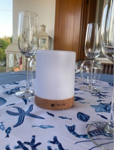 Wystarczy dotknąć górnego pierścienia, aby natychmiast przełączać jasność lub kolory. Wbudowany akumulator litowy wygodnie ładuje się przez USB (ładowarka nie jest częścią zestawu) i zapewnia do 12 godzin świecenia, dzięki czemu lampka idealnie nadaje się na szafkę nocną, do pokoju dziecięcego, na taras i do namiotu.