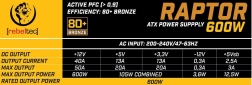 Zasilacz Raptor oferuje najwyższą rezerwę mocy dzięki zaawansowanej konstrukcji i wysokiej jakości komponentom. Na szynie +12V skutecznie generuje 600W do zasilania CPU i karty graficznej, podczas gdy inne linie zapewniają dodatkową moc do łącznej mocy 721W.