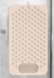 Otwory drenażowe umożliwiają szybkie odprowadzanie wody i skracają czas schnięcia, co sprzyja czystości. Konserwacja jest łatwa – wystarczy spłukać lub przetrzeć. Zintegrowany otwór ułatwia zawieszenie po prysznicu i oszczędza miejsce w łazience.