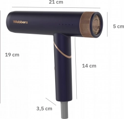 Elegancka suszarka do włosów WEBBER STELLA o mocy 2000 W oferuje 3 stopnie przepływu powietrza, 2 poziomy temperatury, funkcję jonizacji oraz przycisk zimnego nawiewu. Dzięki technologii Ultra‑Silence suszenie jest cichsze, nie brakuje zabezpieczenia przed przegrzaniem, zdejmowanego koncentratora i dyfuzora oraz długiego przewodu 3 m dla wygodnego stylizowania bez ograniczeń.