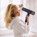 Ujemne jony redukują elektryzowanie się, wygładzają powierzchnię włosa i pomagają ograniczyć puszenie. Po wysuszeniu włosy są miękkie, podatne na układanie i pięknie błyszczące.